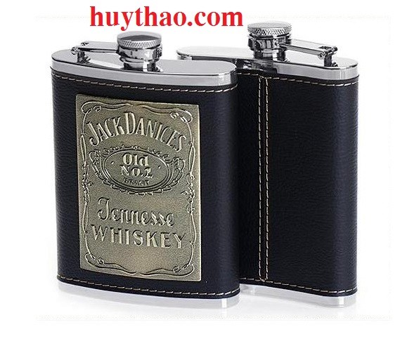 Bình rươu inox bọc da logo Jack Daniel’s (250ml)